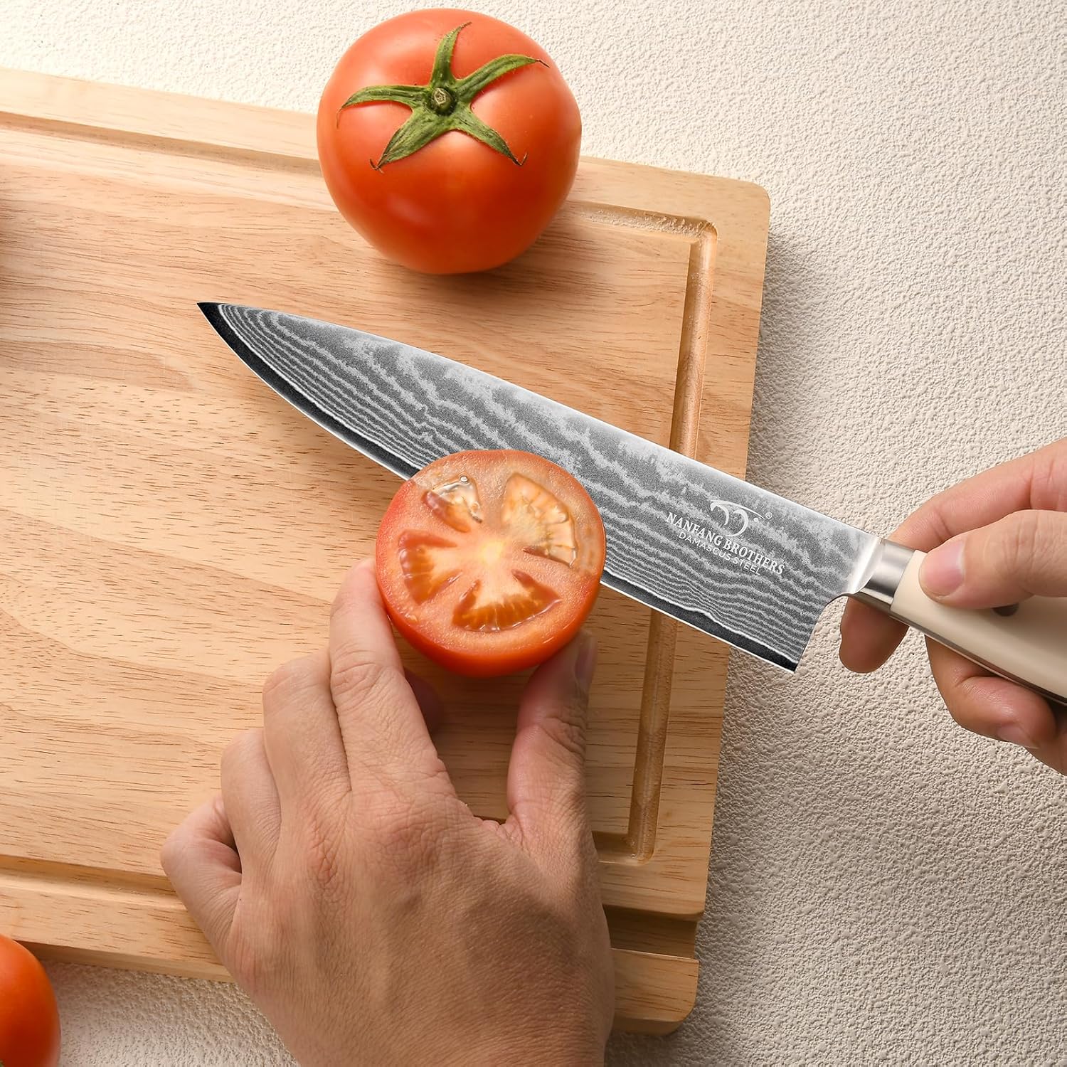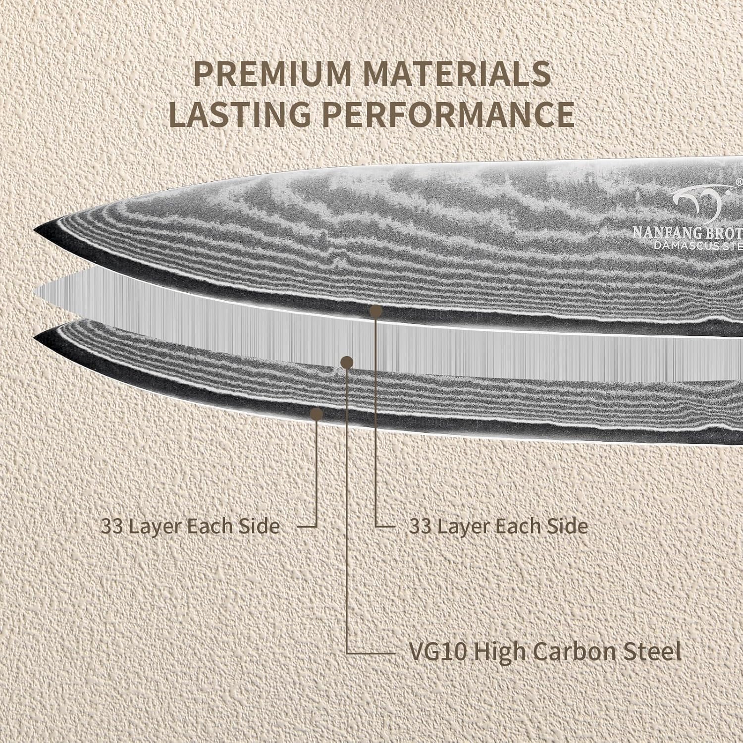 - Premium Damascus Construction with VG10 Steel Core:knife features 67 layers of Damascus steel cladding over a VG10 Damascus steel core. This combination provides exceptional edge retention, superior sharpness, and enhanced durability for precise cutting performance in all kitchen tasks