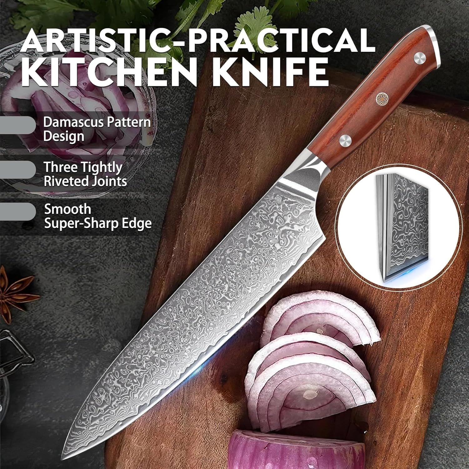 • Masterful Craftsmanship: Meticulously hand-forged by master smiths over 138 processes, our Damascus knives are crafted with layered steel for exceptional purity, strength, and a razor-sharp edge that lasts. This artisanal creation is built for a lifetime of precise cuts.