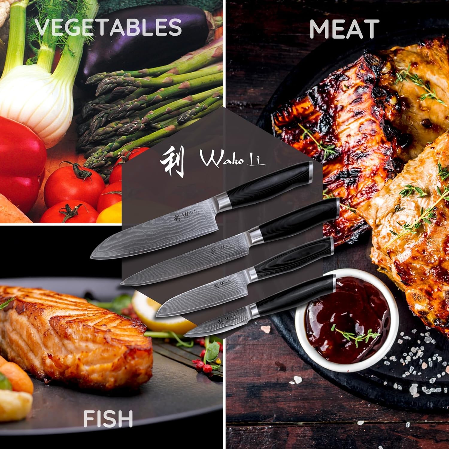 Wakoli Mikata 4-Piece Damascus Knife Set