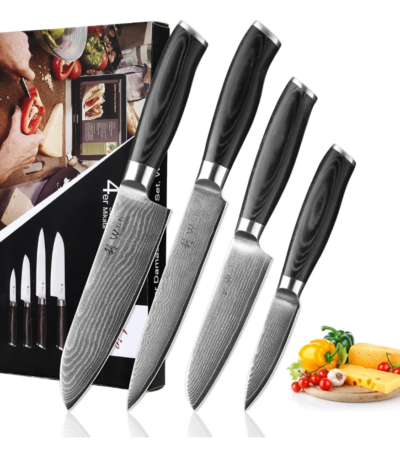 Wakoli Mikata 4-Piece Damascus Knife Set